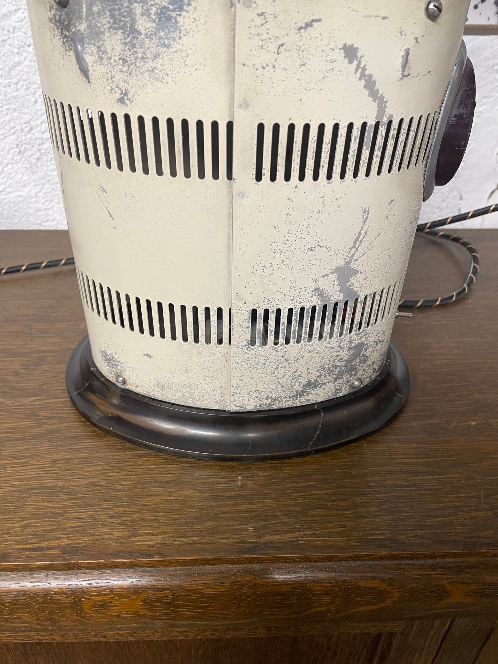Cet appareil a bien vécu, j’ai donc dû sabler la coupole qui reçoit l’ampoule mais j’ai laissé volontairement le reste de peinture d’origine sur le corps.